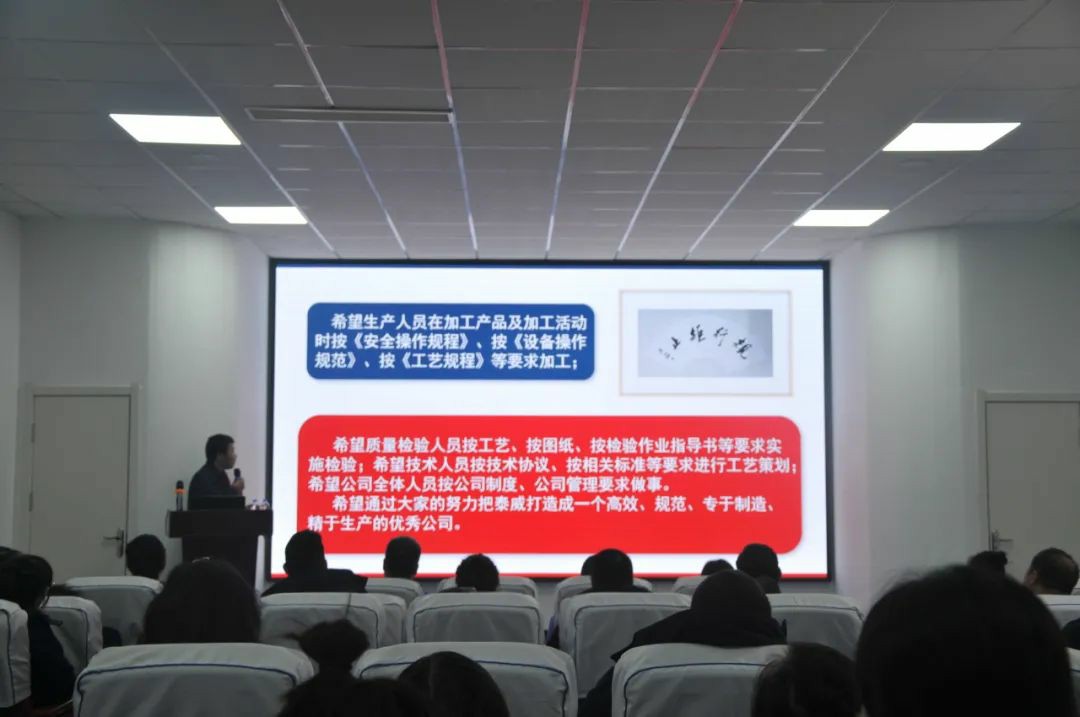 質量部部長從“年終工作總結”“質量部統(tǒng)計分析”“明年工作計劃”三個模塊對質量部的全年工作進行總結,對團隊工作、計量管理、體系審核、外協(xié)供應商管理等方面的工作進行了簡要概括。針對產(chǎn)品質量數(shù)據(jù),為2022年的產(chǎn)品質量控制提出了建設性建議。借用“將月就日”和“止距行規(guī)”兩詞,與大家共勉,希望各部門按照相關文件和流程要求嚴格執(zhí)行各項工作,通過努力把泰威打造成一個高效、規(guī)范、專注制造、精于生產(chǎn)的優(yōu)秀公司。
