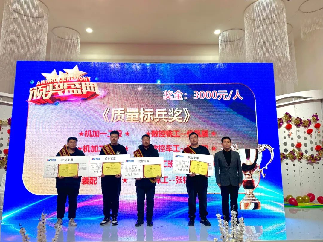 聚焦榮耀加冕,見證榜樣力量。晚會(huì)開始前,公司對(duì)2023-2024年度進(jìn)步青年、優(yōu)秀員工、質(zhì)量標(biāo)兵以及首屆功勛員工進(jìn)行表彰,感謝他們?yōu)閷?shí)現(xiàn)公司高質(zhì)量發(fā)展做出的積極貢獻(xiàn)。一本本榮譽(yù)證書不僅是對(duì)他們工作的肯定,更是對(duì)泰威人實(shí)干精神的傳承和弘揚(yáng)。通過(guò)樹立先進(jìn)典型,發(fā)揚(yáng)榜樣精神,進(jìn)一步增強(qiáng)了全體泰威人的凝聚力和競(jìng)爭(zhēng)力。頒獎(jiǎng)結(jié)束后,公司總經(jīng)理徐剛先生發(fā)表新年致辭,展望2024年公司發(fā)展前景。