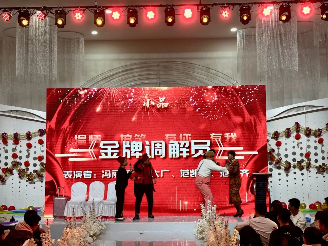 薈萃星光,觥籌熠熠,隨著頒獎(jiǎng)典禮的結(jié)束,晚會(huì)在瀟灑的開場(chǎng)舞《驍》中正式拉開帷幕,隨后,公司各部門工作人員為大家?guī)?lái)了文藝演出,歌曲演唱《笨小孩》、《海芋戀》、《著魔》,黑管獨(dú)奏《上海灘》,舞蹈表演《科目三》、《桃花朵朵開》,小品節(jié)目《四大才子招親》、《金牌調(diào)解員》,大合唱《壯志在我胸》,一段段精彩紛呈的節(jié)目收獲了臺(tái)下觀眾源源不斷的掌聲與歡呼聲,展現(xiàn)了泰威人蓬勃向上的青春風(fēng)采。其中,小品《金牌調(diào)解員》的演員們,憑借著精湛、搞笑的演技,得到了全場(chǎng)觀眾們的認(rèn)可,小品被評(píng)為全場(chǎng)最佳節(jié)目。